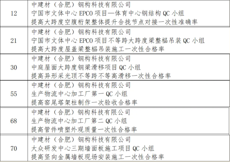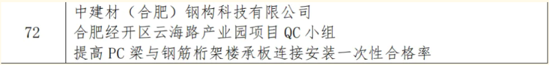 本次競賽旨在深入貫徹落實《質(zhì)量強國建設(shè)綱要》精神,引導(dǎo)鋼木建筑行業(yè)企業(yè)科學(xué)運用先進質(zhì)量管理方法,全面提升工程質(zhì)量管理水平。全國各地眾多鋼木建筑企業(yè)踴躍參賽,競爭異常激烈。公司高度重視此次競賽,精心組織內(nèi)部質(zhì)量管理小組進行成果申報。最終,公司多個質(zhì)量管理小組的項目成果在一眾參賽作品中成功突圍。其中,合肥經(jīng)開區(qū)云海路產(chǎn)業(yè)園項目QC小組的“提高 PC 梁與鋼筋桁架樓承板連接安裝一次性合格率”課題榮獲二等獎。該成果聚焦鋼桁梁底部作業(yè)難題,通過技術(shù)創(chuàng)新,大幅提高了施工效率與安全性,為業(yè)內(nèi)同類工程提供了極具價值的實踐范例。此外,中建材鋼構(gòu)公司還有6項成果榮獲三等獎,獲獎成果覆蓋鋼結(jié)構(gòu)制造、安裝以及施工工藝優(yōu)化等多個領(lǐng)域,均是公司質(zhì)量管理小組在實際工程項目中,運用科學(xué)方法,深耕技術(shù)創(chuàng)新與質(zhì)量改進工作的結(jié)晶。
